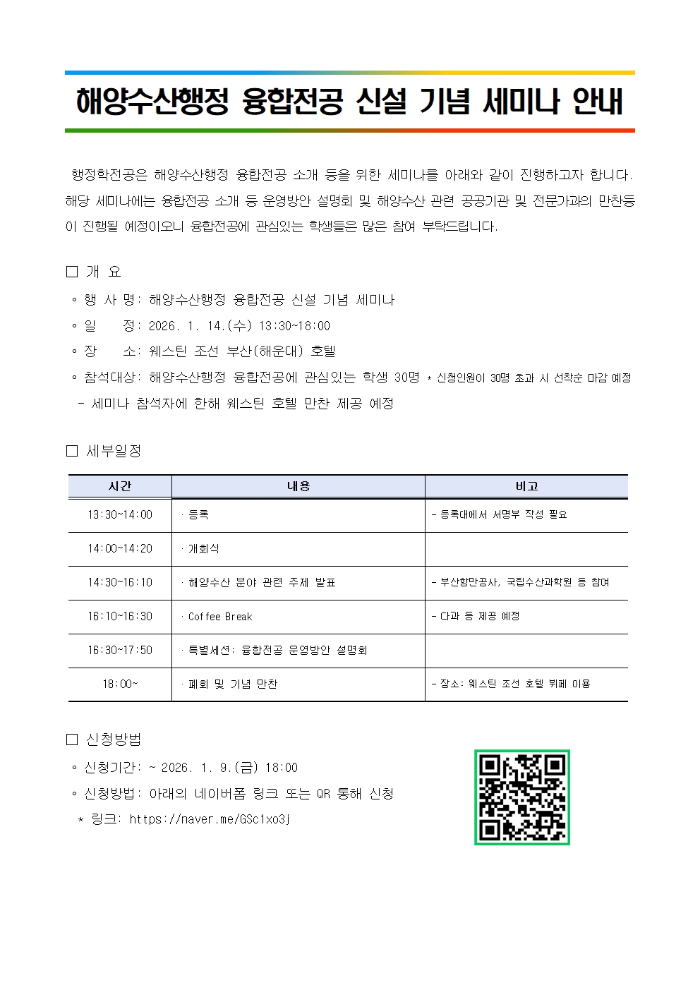해양수산행정 융합전공 신설 기념 세미나 안내