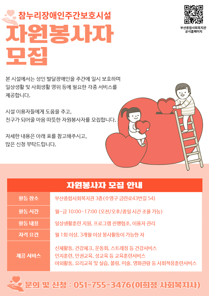 [사회복지학전공] 부산종합사회복지관(참누리장애인주간보호시설) 자원봉사자 모집