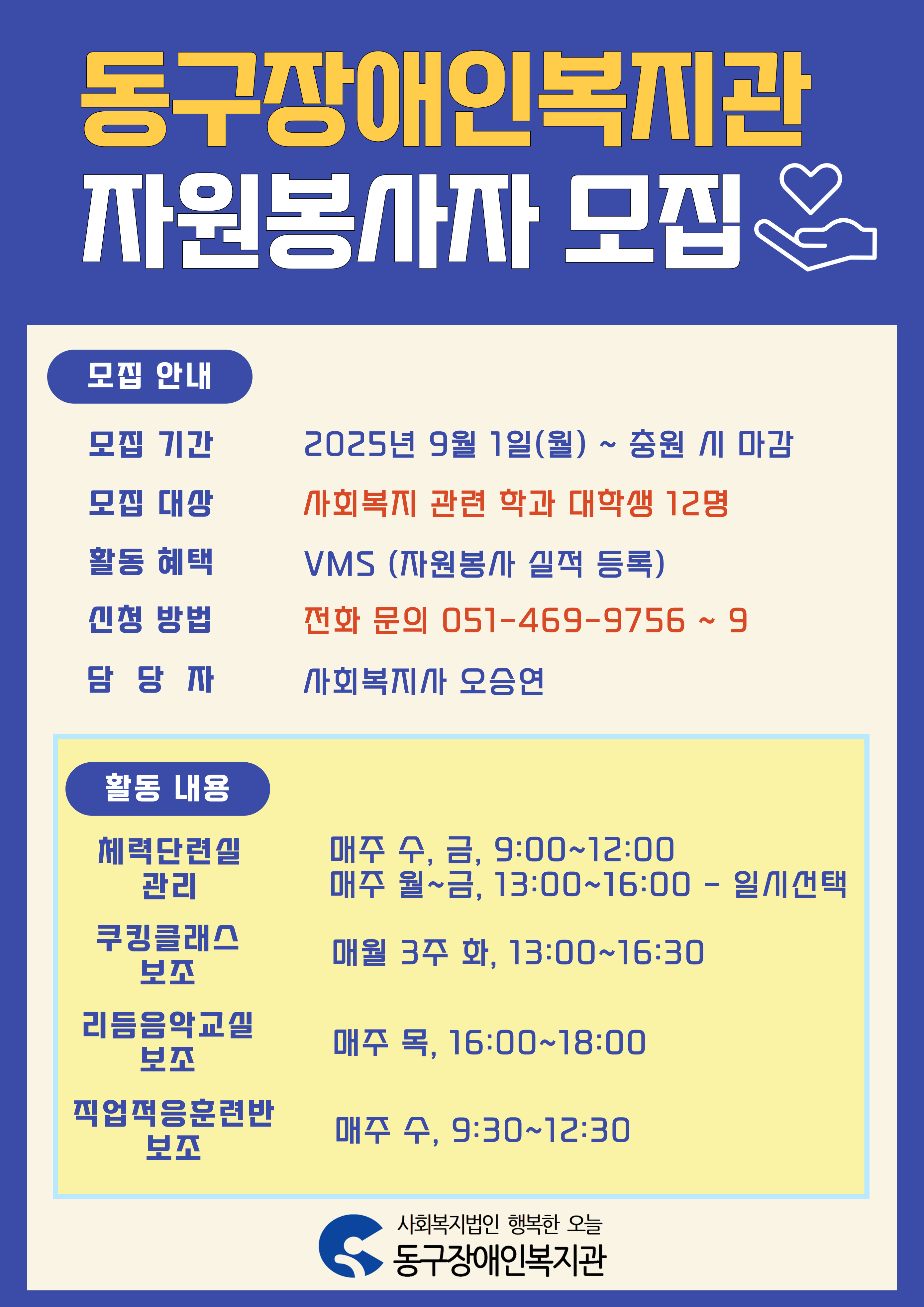 [자원봉사] 동구장애인복지관 | 하반기 자원봉사자 모집 안내